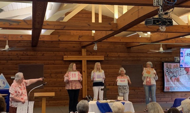 Spirits were also lifted as others blessed us with their talents: Lindsey Peedin and Angie Jacobs sang Great is Thy Faithfulness, Crystal Gray blessed us with Four Days Late, Sharon Dilley ministered with Not Too Broken to Belong and Dawn Bass rendered to us, I Bowed on My Knees. Mrs. Virginia Skinner beautifully played the “new chapel piano” for us to sing, for personal meditations, and blessed us by singing, Jesus, I Will Walk with You. Our hats were off to the Tee’s Chapel ladies as they were “steppin’ out of their comfort zone” and using their talents to challenge us, with the skit, “These Shoes Were Made for Walking.”